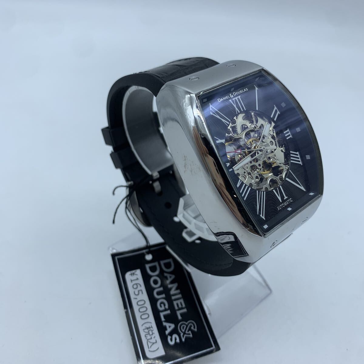 DANIEL & DOUGLAS ダニエスダグラス 自動巻 DD8808 オートマチック スケルトン 稼働品 黒文字盤 腕時計 レザーベルト