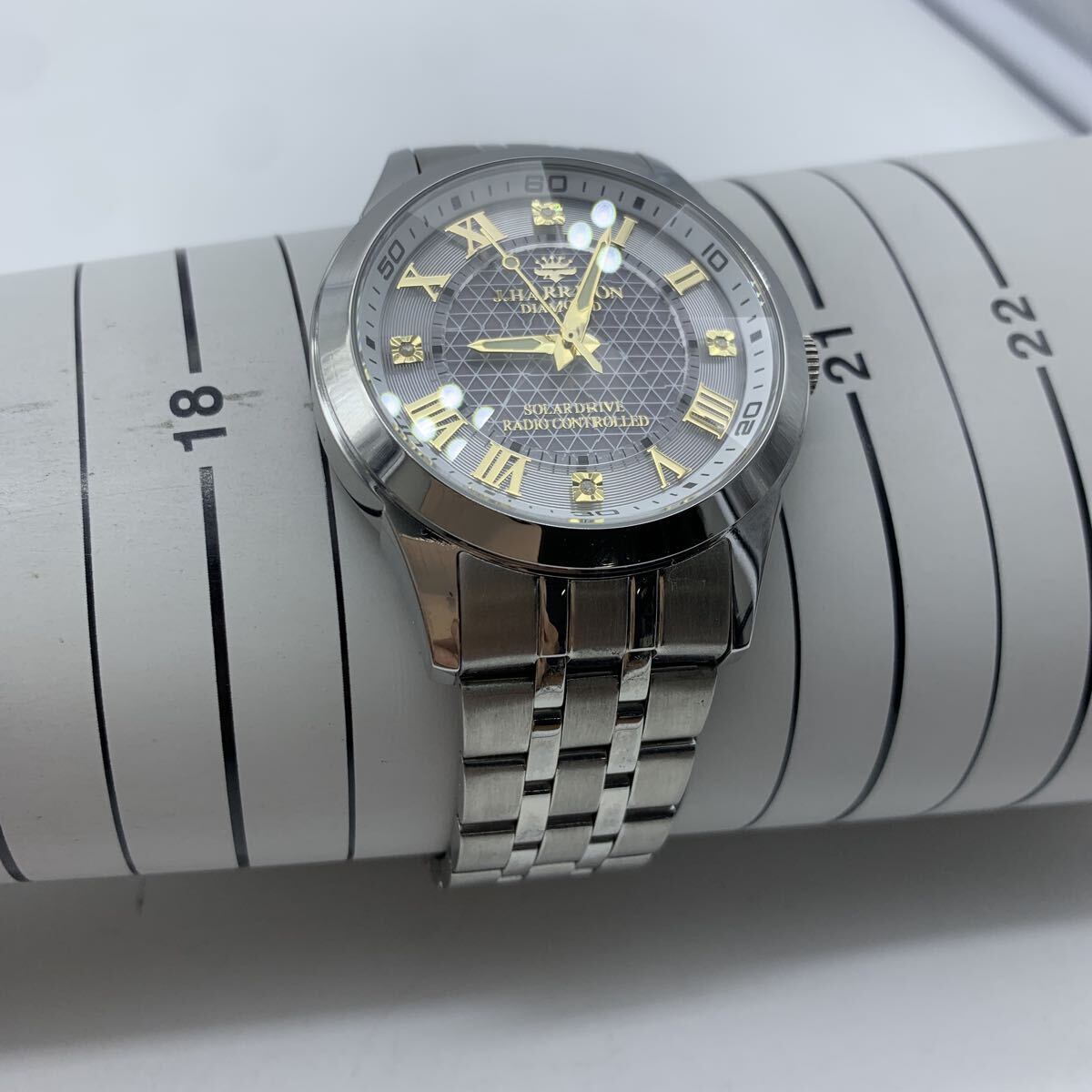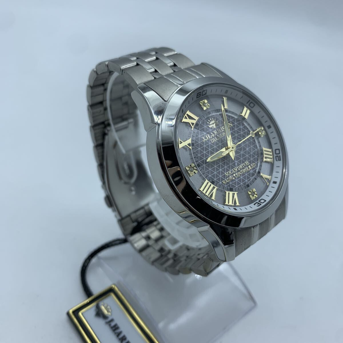 J.HARRISON JH-082MGW ジョンハリソン 電波 ソーラー シルバー 稼働品 タグ付き 美品