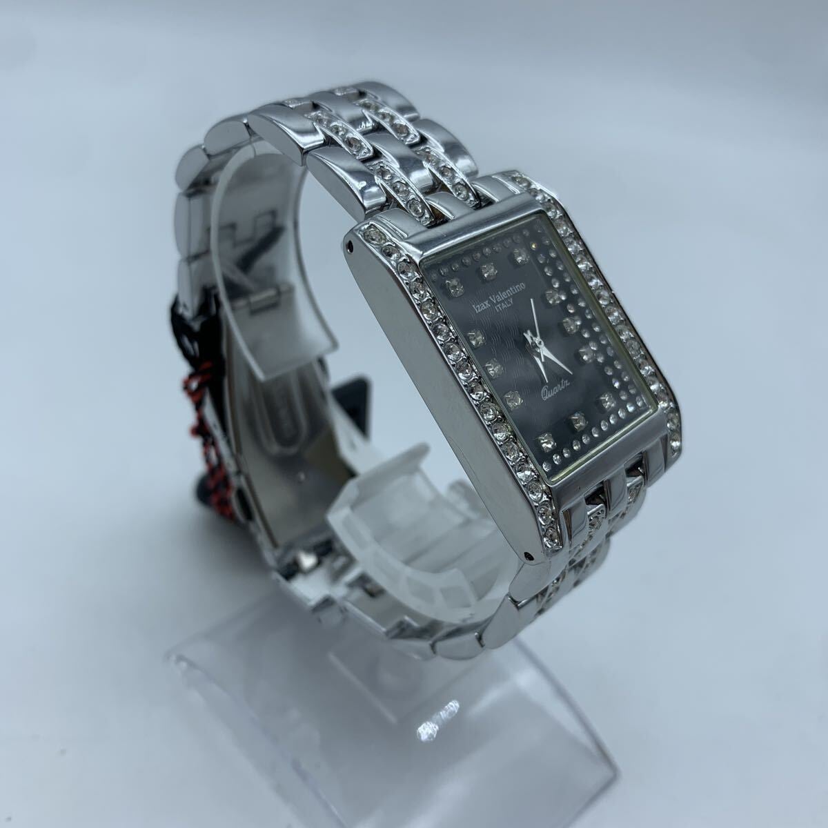Izac Valentino アイザックバレンチノ 腕時計 メンズ スクエア ラインストーン IVG-7000 メンズ 黒文字盤 稼働品